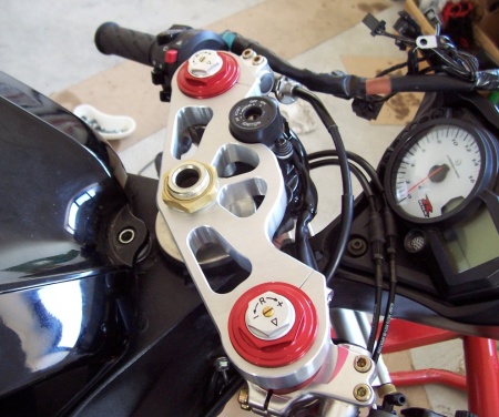 Questa piastra in particolare prevede sia il montaggio del blocchetto elettrico che l'uso del bloccasterzo ed è predisposta per il montaggio dei riser manubrio.